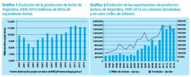 En el año 2011 se produce una importante recuperación de la producción de leche, debido a la combinación de factores económicos (una mejora de la rentabilidad comparativa frente a la agricultura, particularmente en 2010) y climáticos (fue un año normal, tanto en lo que respecta a lluvias como a temperaturas). Luego, a partir del año 2012, la producción de leche se estancó nuevamente, y aunque no hay cifras oficiales aún, es probable que en el 2014 haya sido incluso inferior a la de 2011. Para el período completo 2006-2014 la tasa de crecimiento de la producción ha sido del 1,1% anual.